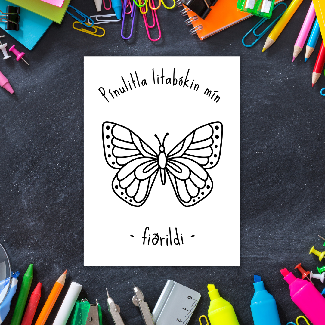Pínulítil litabók fyrir káta krakka sem elska fiðrildi! Fullkomið í fríið og dundið heima.